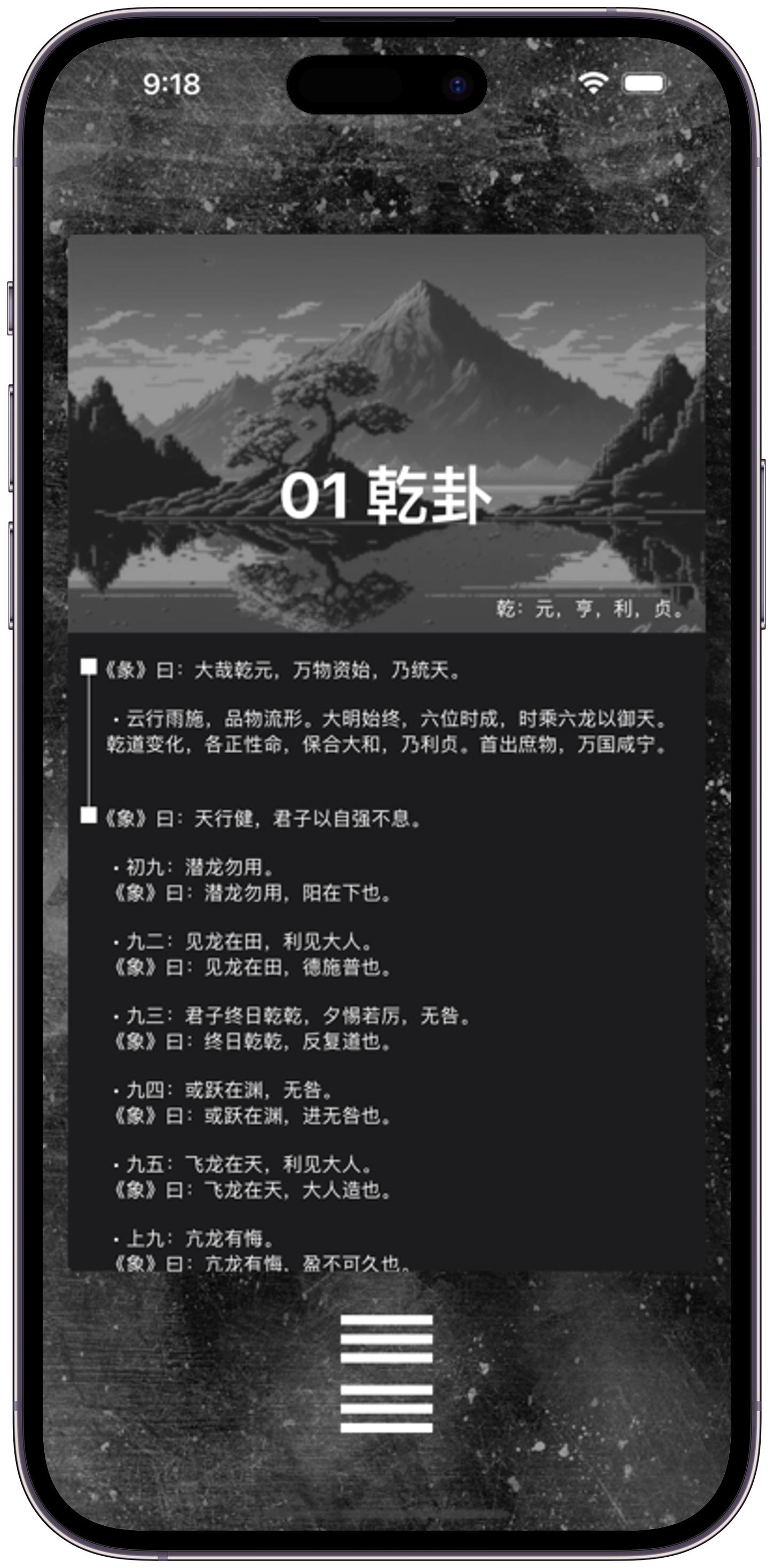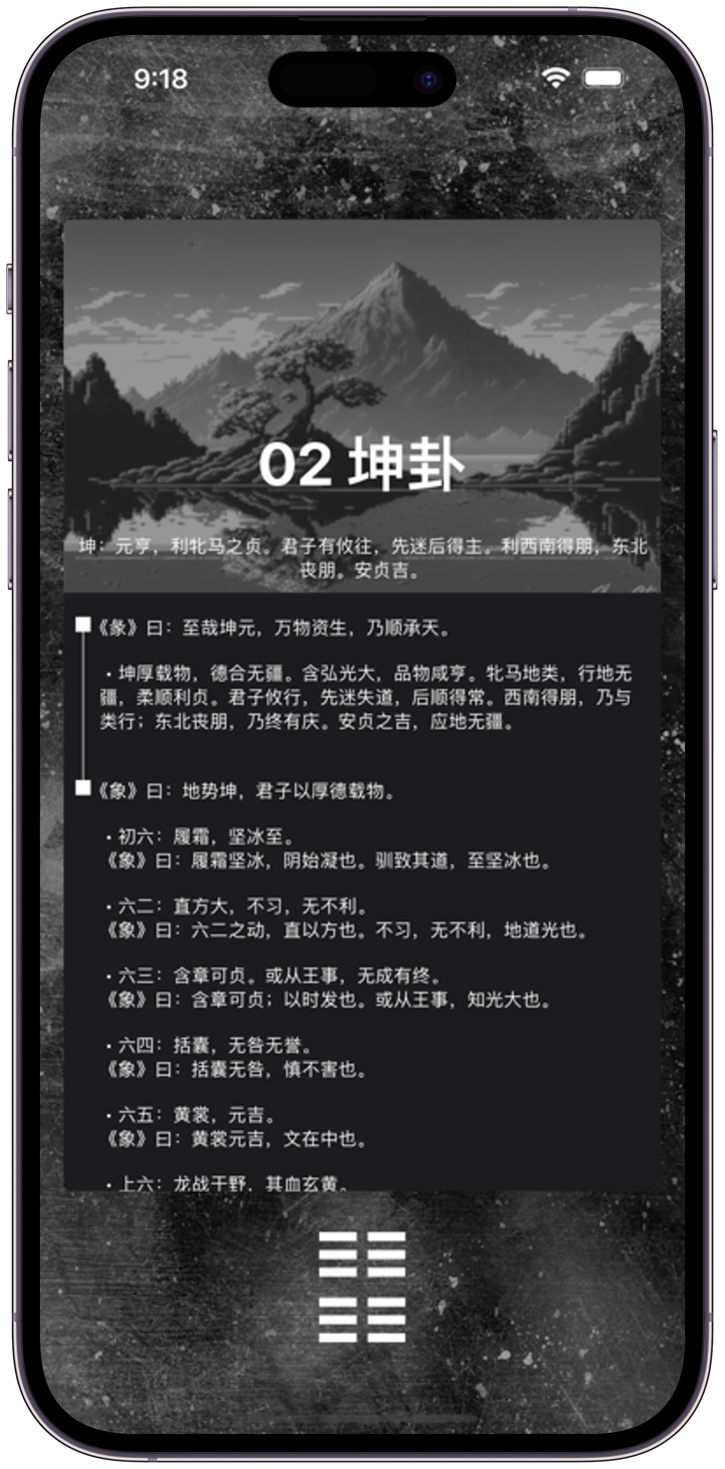 Divining made easy more than ever, swipe to get a hex diagram while focusing on the divination topic