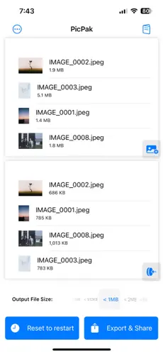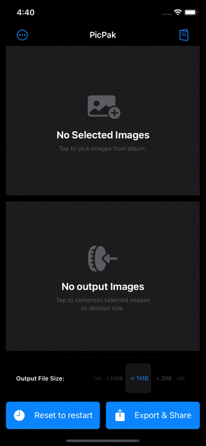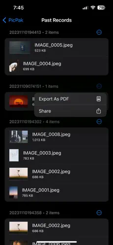 Images reduced to target file size with a few clicks. Browse through your past output records without effort. And - Export and Sharing as bundled PDF file or simply images directly!.